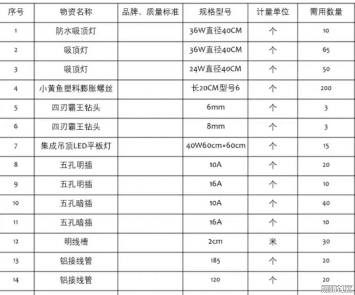 新疆地区工程项目需求: 吸顶灯,防水吸顶灯,集成吊顶LED平板灯,数量约140...